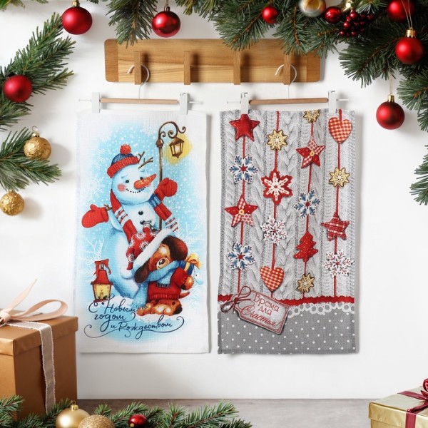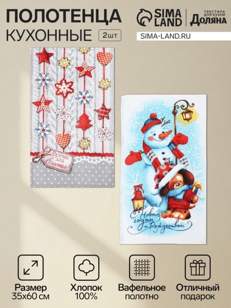 Набор полотенец кухонных «Доляна. Время для счастья», 35×60 см-2 шт., хлопок 100%