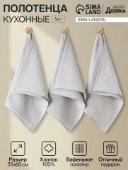 вики | Набор кухонных полотенец «Доляна», цвет серый, 35×60 см-3 шт., 100% хлопок, вафля, 220 г/м²(10500337) |