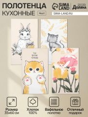 Светлана Викторовна+ | Набор кухонных полотенец «Доляна. Лови приятные моменты», 35×60 см-4 шт., 100% хлопок(10202602) |