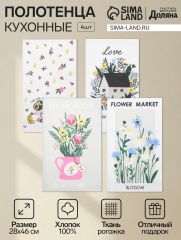 Светлана Викторовна+ | Набор кухонный полотенец «Доляна» Love is here, 4 шт., 28×46 см, 100% хлопок, рогожка 160 г/м²(10202614) |