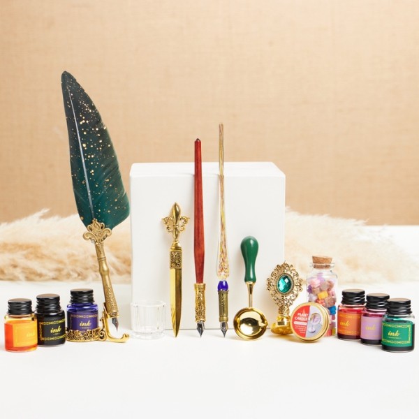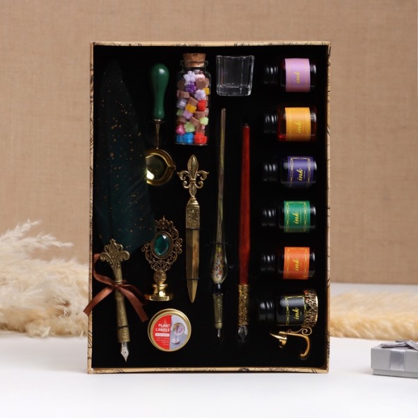 АКЦИЯ! 3 по цене 2! Набор подарочный 14 в 1 «Зачарованный»: 3 перьевые ручки, чернила 6 цветов, печать, воск, нож