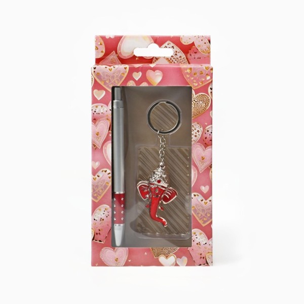 АКЦИЯ! 3 по цене 2! Набор подарочный, 2 предмета: ручка, брелок - красный слон