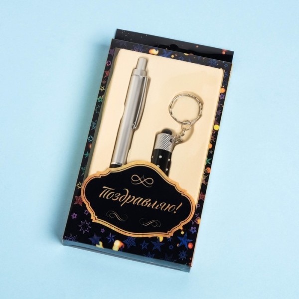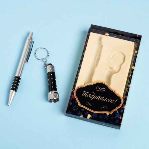 АКЦИЯ! 3 по цене 2! Набор подарочный 2 в 1, ручка, фонарик черный