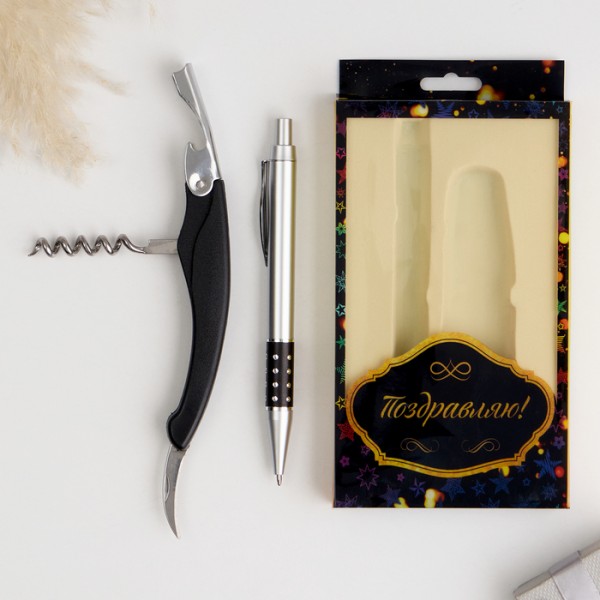 АКЦИЯ! 3 по цене 2! Набор подарочный 2 в 1, ручка, открывалка-штопор