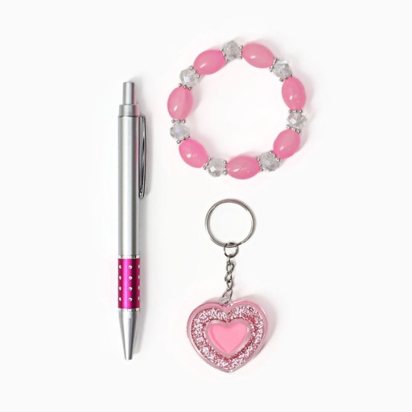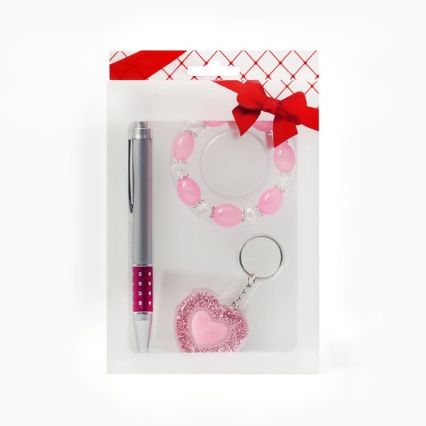 АКЦИЯ! 3 по цене 2! Набор подарочный, 3 предмета: ручка, резинка для волос, брелок