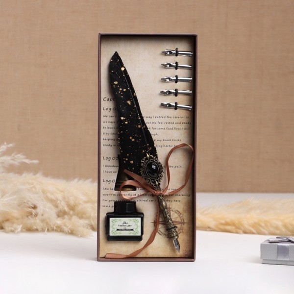 АКЦИЯ! 3 по цене 2! Набор подарочный 3 в 1 «Артефакт»: перьевая ручка на подставке, чернила, наконечники, черный