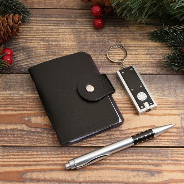АКЦИЯ! 3 по цене 2! Набор подарочный 3 в 1, ручка, визитница, фонарик