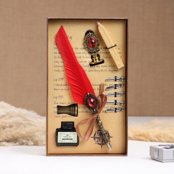 АКЦИЯ! 3 по цене 2! Набор подарочный 5 в 1 «Реликвия»: перьевая ручка красная, чернила, наконечники, печать, воск