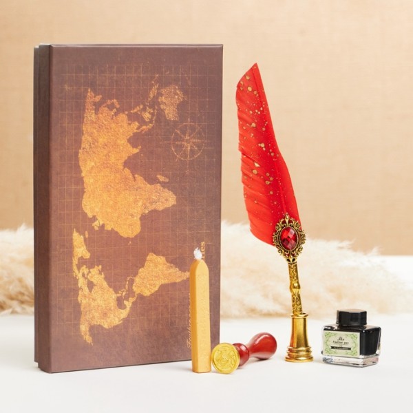 АКЦИЯ! 3 по цене 2! Набор подарочный 5 в 1 «Реликвия», перьевая ручка розовая, чернила, печать, воск