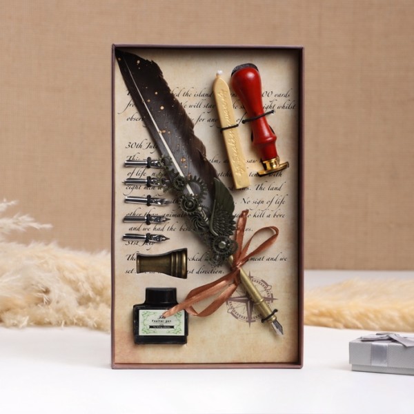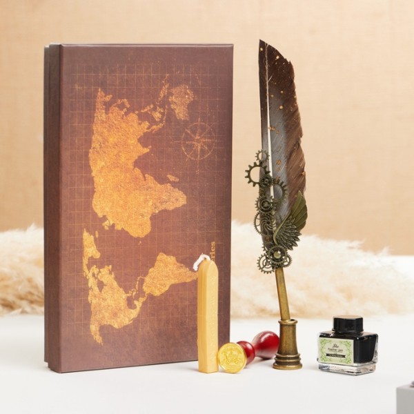АКЦИЯ! 3 по цене 2! Набор подарочный 5 в 1 «Стимпанк»: перьевая ручка черная, чернила, наконечники, печать, воск