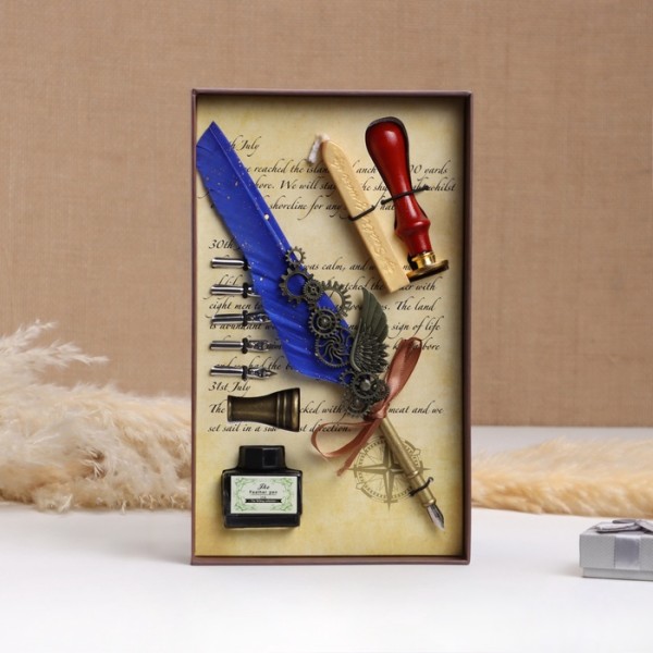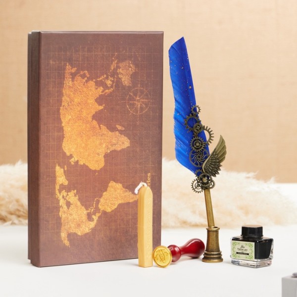 АКЦИЯ! 3 по цене 2! Набор подарочный 5 в 1 «Стимпанк»: перьевая ручка синяя, чернила, наконечники, печать, воск