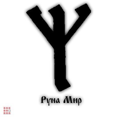 Первый символ венедского ряда руна Мир отождествляется со Вселенной. Она объединяет существенную, зримую жизнь и тонкие измерения, подвластные духам.
