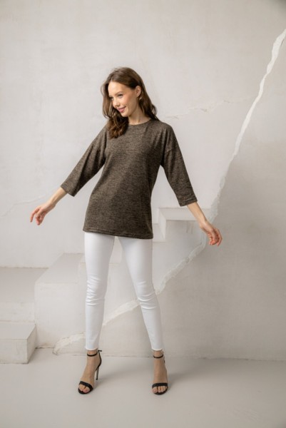 Джемпер полуприлегающего силуэта длиной ниже середины бедра. Круглая горловина обработана подкройной обтачкой. Заниженная линия плеча переходит в узкие рукава длиной три четверти. На спинке центральный шов для лучшего облегания по фигуре. Джемпер хорош тем, что минимализм и полное отсутствие декора дают простор фантазии при выборе комби-партнера. Такая вещь будет прекрасным подарком для тех женщин, кто любит комфорт и элегантность. Фасон подходит для любого телосложения и размера. Трикотажное полотно, производства Турции, обладает хорошей растяжимостью и эластичностью. Качество пошива джемпера соответствует Госстандартам качества РФ, само изделие промаркировано штрих кодами EAN 13.
