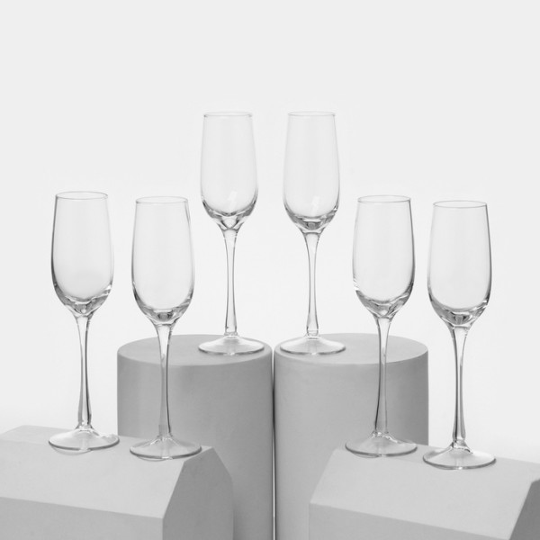 Бокалы для шампанского, 180 мл, набор 6 шт., стекло, прозрачные