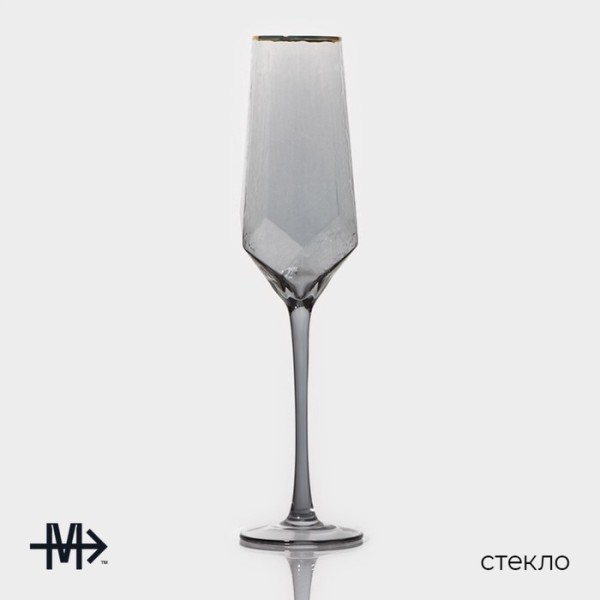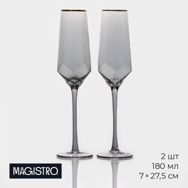 Бокалы для шампанского Magistro «Дарио», 180 мл, 7×27.5 см, набор 2 шт., стекло, графитовые