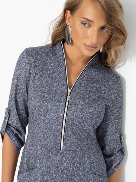 Идеальный баланс стиля и практичности найден. Платье ЧАРУТТИ для встречи с подругами и их детьми. Оно дарит невероятную свободу движений, чтобы легко участвовать в играх и обниматься. Твой стиль безупречен, даже если на плече след от детской ладошки. Платье приталенного силуэта с акцентом на талии. Длина миди. Акцентный крой рукавов – есть застежка, которая регулирует длину. Нетривиальный ворот изделия оформлен молнией по всему вырезу горловины. Изделие с карманами. Цвет изделия неоднородный серый.