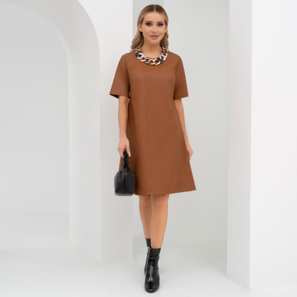 Вы готовы? Получить шедевр в вашу коллекцию. Уникальное платье, объединяющее лучшие тренды мировой моды 2022. Взгляните: экокожа и силуэт-трапеция. Оттенок Мокка, известный своей изысканностью и очарованием. Успевайте!