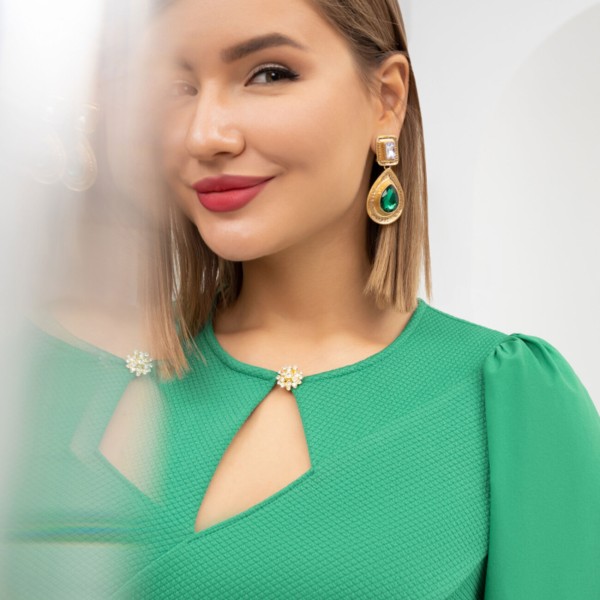 Спокойная история. Пейзажный green, объемный рукав, трендовые разрезы. Платье идеально садится за счет текучего материала. От него веет теплом и умиротворенностью. Но всё меняют аксессуары. Фантазируй!