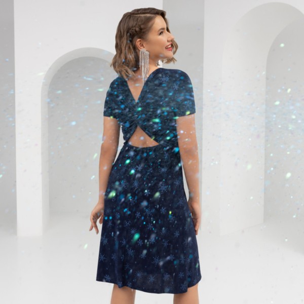 Snow Queen! Такой посыл новой модели из мягкой ткани с уникальным принтом и вырезом на спинке. Он делает платье подходящим для праздников и вечеринок. Остаётся лишь добавить улыбку, любимые серьги и горящий взгляд!
