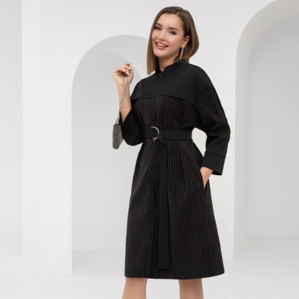 Платье с деталями тренча - союз, который благословили небеса. Плотная ткань, воротник стойка, пояс и карманы говорят о сдержанности. А силуэт и акцент на талии делают эту необычную модель очень женственной