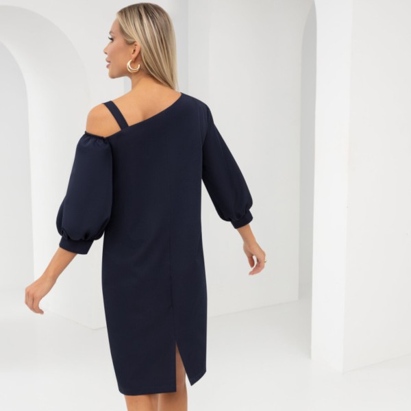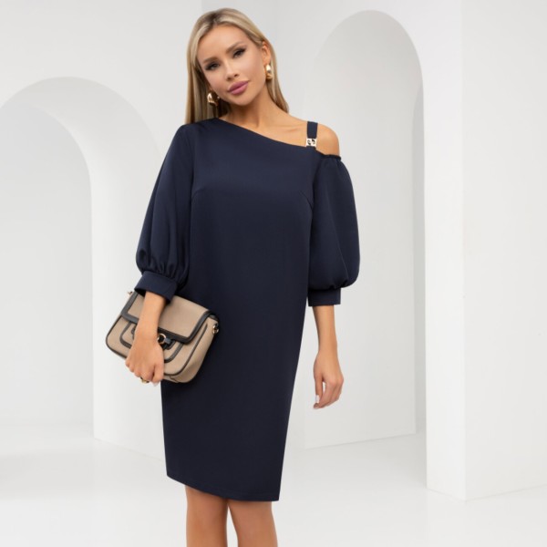 Платье для роскошной девушки. Лямка, обнаженное плечо, объемный рукав 3/4. Масса деталей, делающих модель исключительной. Красотка с обложки, аристократка из сериала. Не меньше. Говорящий look.