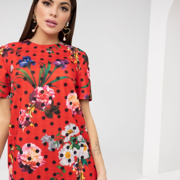 Платье трендовой длины мини. Невероятно весенний look с цветочным принтом. Яркое пятно в повседневном гардеробе. Экспрессия и акценты - главные хиты сезона весна-лето 2023.