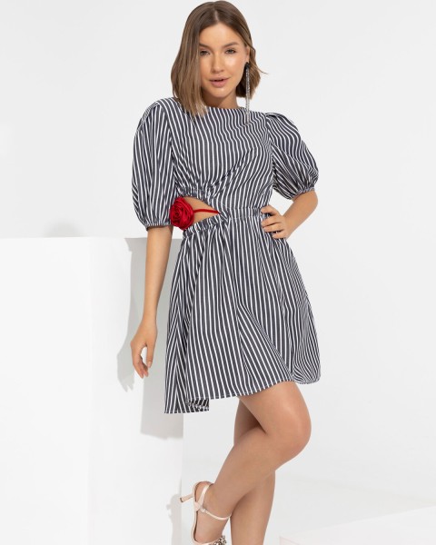 Иногда об одном мгновении мы вспоминаем долгие годы. Чтобы таких моментов было больше, наполни каждый день деталями. Эффектное платье-мини в полоску с пикантным трендовым разрезом – то, что нужно.