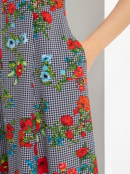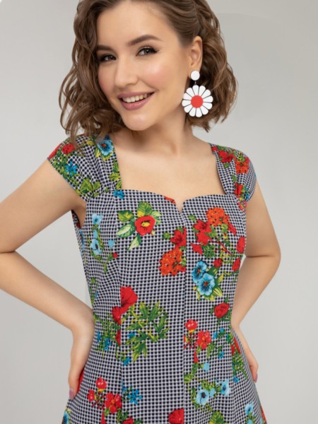 Объявляем сезон открытого! И наряжаемся в предвкушении: по-настоящему жаркий сарафан в клетку с яркими цветочными принтами. Миди-длина, кокетливое декольте, лямки со сборкой. С теми яркими босоножками – огонь!