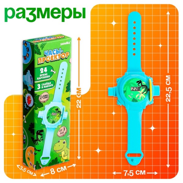 Часы-проектор «Динозавры», световые эффекты, 24 картинки, цвет голубой