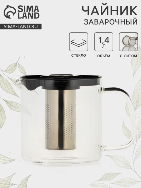 Чайник заварочный «Локи», 1.4 л, с металлическим ситом, стекло, чёрный