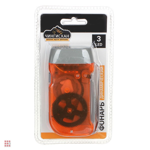 Динамический фонарик Чингисхан не требует зарядки от источника питания. Не нужно покупать батарейки. Осветительный прибор работает от встроенного аккумулятора с генератором. Подзарядка осуществляется интенсивным нажатием на ручку. Одна минута зарядки обеспечивает 25 минут свечения. Дальность свечения светодиодного устройства составляет 3 метра. Производитель обещает до 100 000 часов работы.Тип товара фонарь ручнойБренд ЧИНГИСХАН