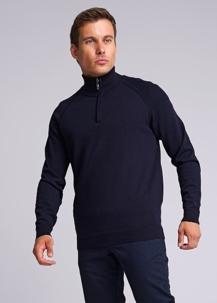 Джемпер, с воротником стойка с короткой молнией и рукавом покроя реглан. Данный джемпер прекрасно впишется в любой гардероб. Он комфортный в носке, прекрасно сохраняет тепло. Станет отличным дополнением к брюкам.