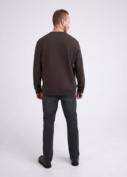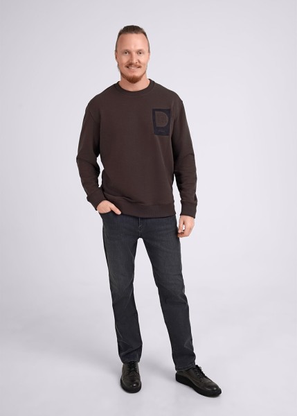 Мужской джемпер с круглым вырезом горловины со спущенным рукавом на манжете и поясе. Изделие выполнено из плотного футера. Модель дополнена дизайнерской аппликацией. Отличный вариант для повседневного образа со спортивным низом или джинсами.
