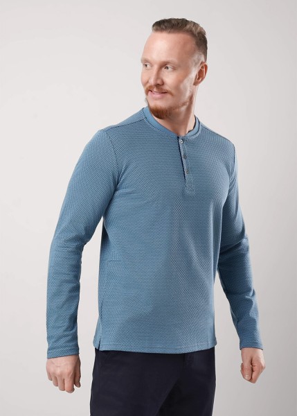 Джемпер из трикотажного фактурного полотна "ячейка". Изделие с удобной планкой на пуговицы и дополнено дизайнерским принтом. Данная модель отличное дополнение к брюкам или джинсам. Прекрасно подойдёт для встречи с друзьями.