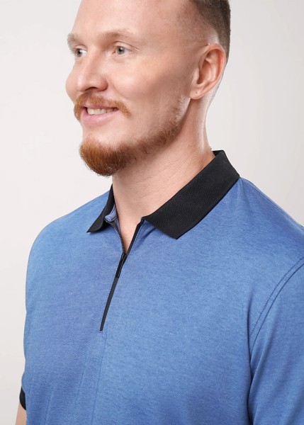 Футболка-поло с вязаными отделками. Модель с коротким рукавом на манжете и функциональной планкой на молнию. Модель можно дополнить брюками или джинсами. Отличный вариант для встреч с друзьями.