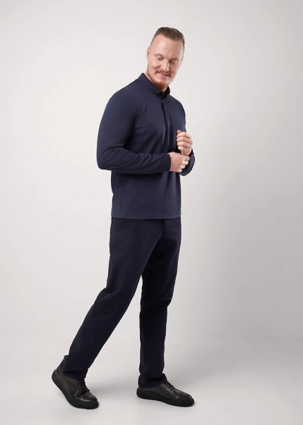 Рубашка-поло с длинным рукавом. Изделие выполнено из трикотажного полотна с кроеным отложным воротником. Модель дополнена имиджевой фурнитурой. Такая рубашка-поло отлично сочетается с брюками или джинсами.