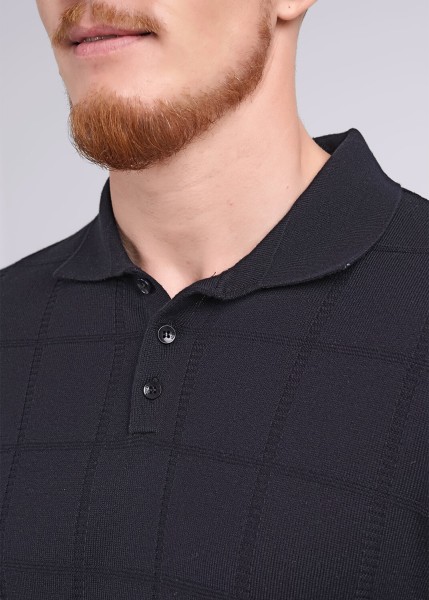 Мужское вязаное поло с длинным рукавом. Модель связана из приятной хлопковой пряжи с добавлением акрила в интересную фактурную клетку по передней стороне. Изделие можно сочетать как в классическом стиле, так и в повседневном.