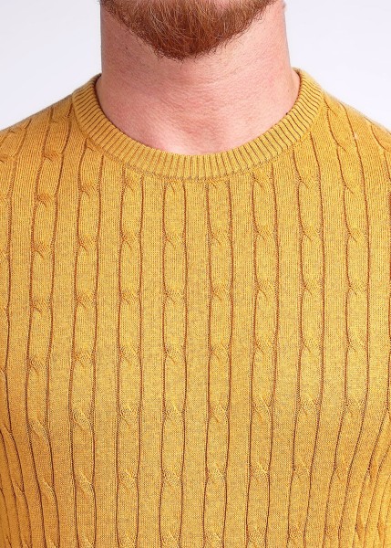 Джемпер мужской из смесовой хлопковой пряжи с длинным рукавом и круглой горловиной. По переду фатурное переплетение - косы. Данный джемпер можно комбинировать с брюками или джинсами. Прекрасно подойдёт для похода на работу.