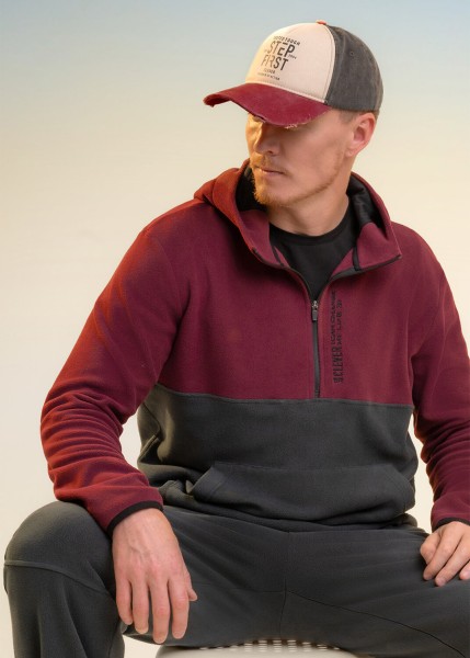 Мужская толстовка выполнена из флиса. Модель с укороченной застежкой на молнию и вместительным карманом, так же дополнена имиджевой вышивкой. Прекрасно подойдёт для холодного времени года.