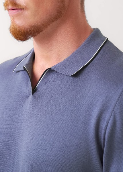 Вязаное поло с V-образной горловиной и отложным воротником. Модель выполнена из смесовой пряжи. Великолепный акцент в вашем гардеробе.
