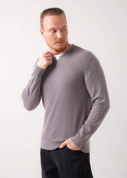Джемпер мужской из смесовой хлопковой пряжи с длинным рукавом, планкой с иммитацией двойной горловины. Отличное решение на холодное время года. Данный джемпер можно комбинировать с брюками или джинсами. Прекрасно подойдёт для похода на работу.