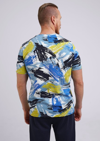 Футболка из дышашего хлопкового полотна. Интересное звучание модели придаёт дизайнерская набивка на полотне. Такая модель разнообразит любой образ и прекрасно подойдёт к спортивным брюкам или джинсам.