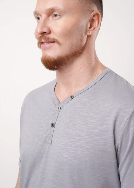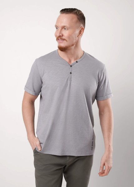 Футболка с планкой на пуговицы из фактурного хлопкового полотна флам. Данную модель дополняет принт и имиджевая фурнитура. Прекрасное решение для встречи с друзьями или похода на работу. Составит комплект с брюками или джинсами.