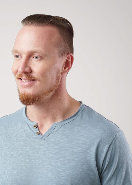 Футболка мужская с округлой горловиной и планкой из фактурного полотна "флам". Данная модель прекрасно комбинируется с джинсами или шортами. Отличное решение на лето для прогулок с друзьями или поездки на отдых.