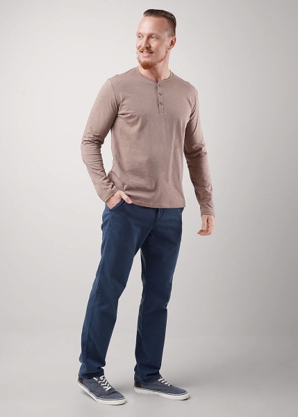 Лонгслив мужской с длинным рукавом, округлой горловиной на планке из фактурного полотна "флам". Изделие дополнено имиджевой фурнитурой. Данная модель прекрасно комбинируется с джинсами или шортами благодаря своей универсальности.