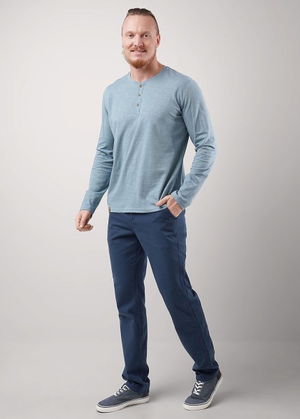 Лонгслив мужской с длинным рукавом, округлой горловиной на планке из фактурного полотна "флам". Изделие дополнено имиджевой фурнитурой. Данная модель прекрасно комбинируется с джинсами или шортами благодаря своей универсальности.