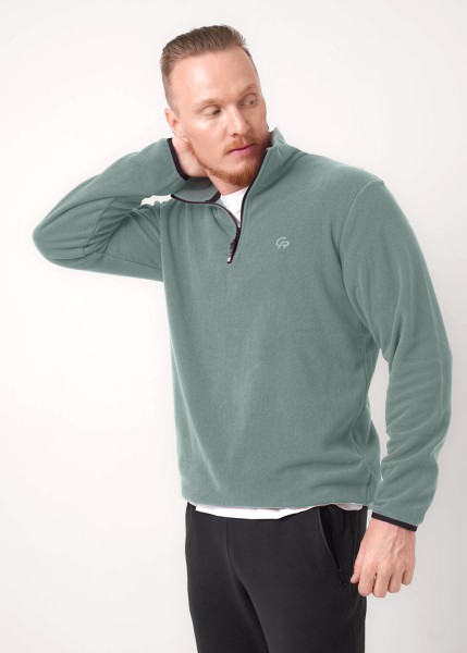 Мужская толстовка выполнена из мягкого теплого флиса. Воротник-стойка и укороченная застежка на молнию будут максимально защищать от ветра и холода. Модель дополнена имиджевой вышивкой и контрастной фурнитурой.