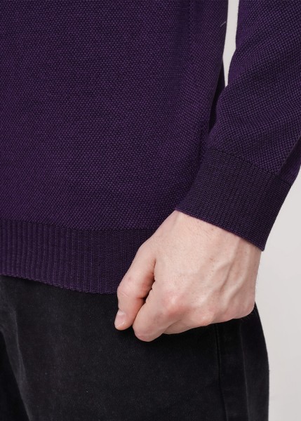 Классический вязаный джемпер с круглой горловиной. Изделие изготовлено из смесовой пряжи с содержанием хлопка. Данный джемпер удачно впишется в повседневный гардероб современного мужчины, привнося тепло, комфорт и элегантность одновременно.
