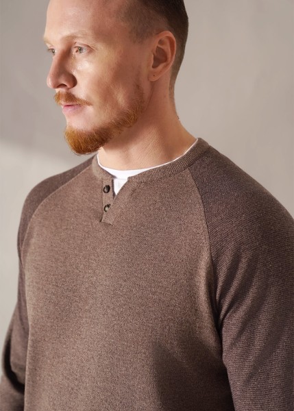 Джемпер мужской из смесовой хлопковой пряжи с длинным рукавом, планкой с иммитацией двойной горловины. Отличное решение на холодное время года. Данный джемпер можно комбинировать с брюками или джинсами. Прекрасно подойдёт для похода на работу.