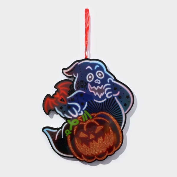 Декоративная светящаяся подвеска - украшение «Привидение и тыква», 30.5×29.5 см